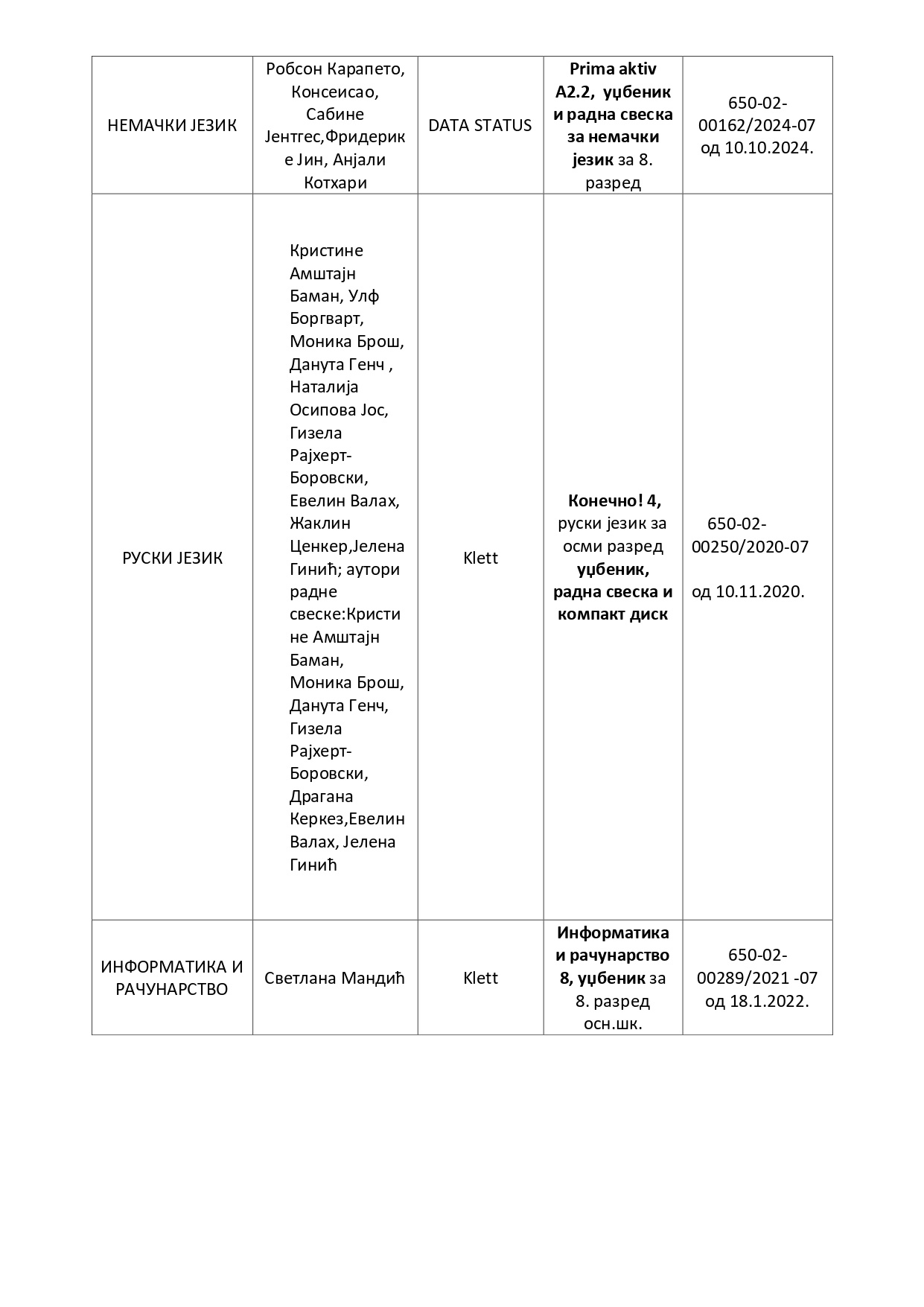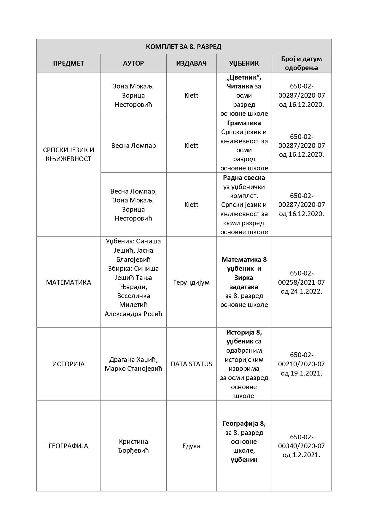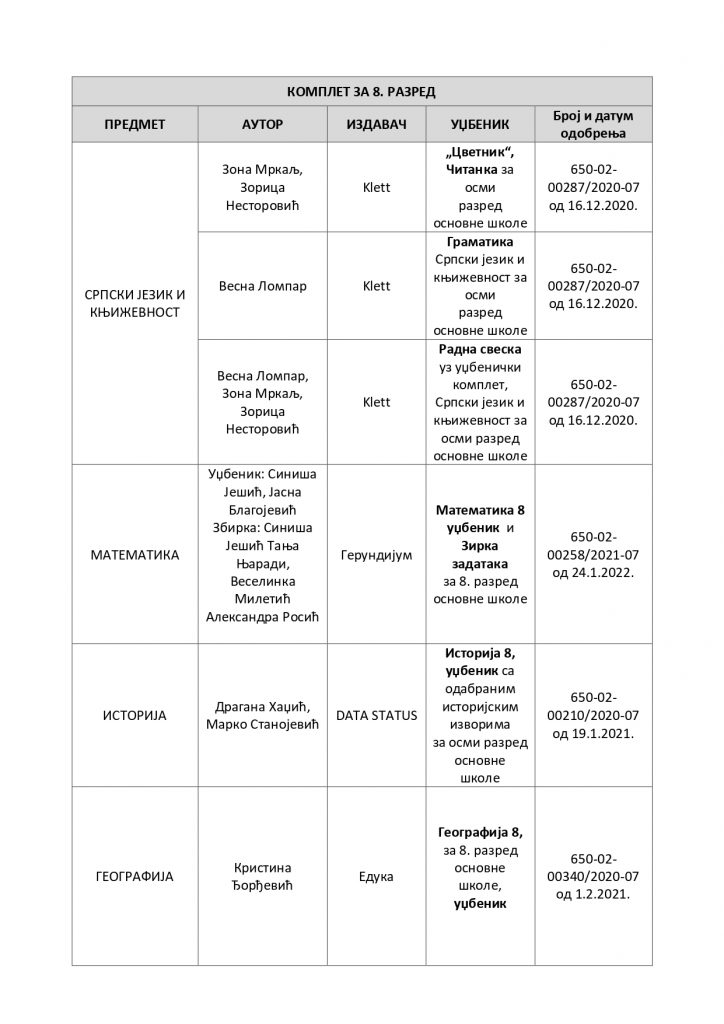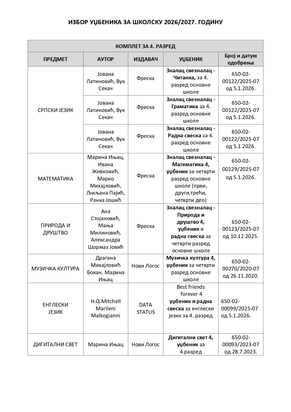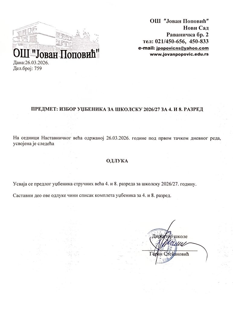 Избор уџбеника за 4. и 8. разред за школску 2026/2027