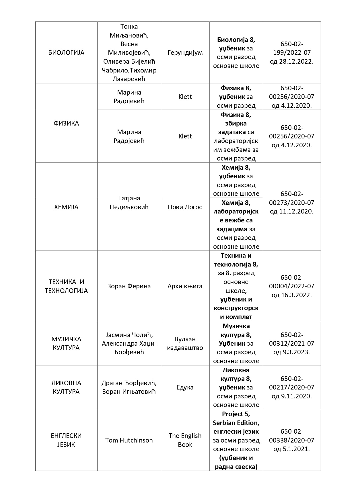 Списак уџбеника за школску 2022/23. годину