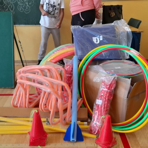 Опрему су уручили покрајински секретар за спорт и омладину Дане Баста и председник Савеза за школски спорт Војводине Бранислав Тешић.
