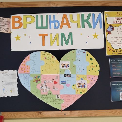 Завршно Срце – пузле, као и едукативни постери постављени су на паноу Кутка за вршњачки тим у ђачком холу школе.