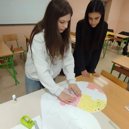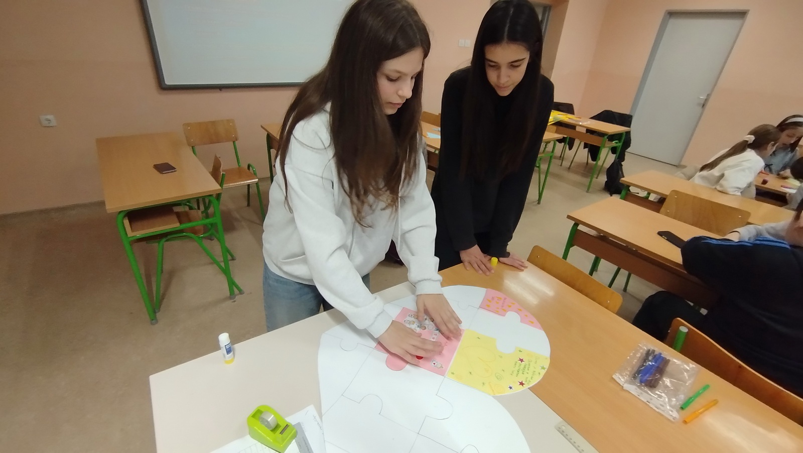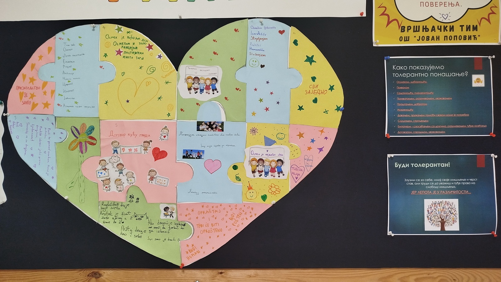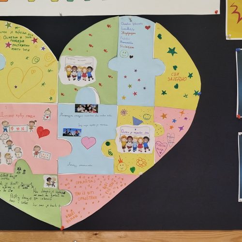 Кроз тимски рад и активност Срце – пузле, ученици су украшавали своје делове цртежима, бојама и кратким порукама. Након тога ученици су саставили велико срце од својих делова. На овај начин је приказано да сваки ученик доприноси стварању позитивне и толерантне атмосфере.