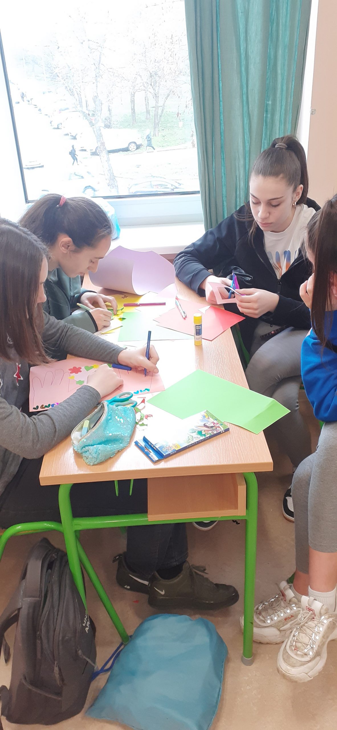 Током радионице Вршњачког тима и ученика који похађају активности у једносменском су у недељи обележавања Међународног дана борбе против вршњачког насиља промовисали превенцију и заштиту ученика од насиља и дискриминације кроз израду паноа, ликовних радова и на тај начин указали на значај толеранције, међусобног уважавања, поштовања различитости, емпатије, сарадње, и још једном указали на значај постојања Сандучета поверења и потребе да на ЧОС-у сви заједно посвете пажњу овој теми… Координатор ВТ Горана Петровић је израдила Постер и инфографик како би подсетила децу и ученике да је важно Не ћутати о насиљу и указала на то коме је потребно да се обрате у случају било ког облика насиља.
