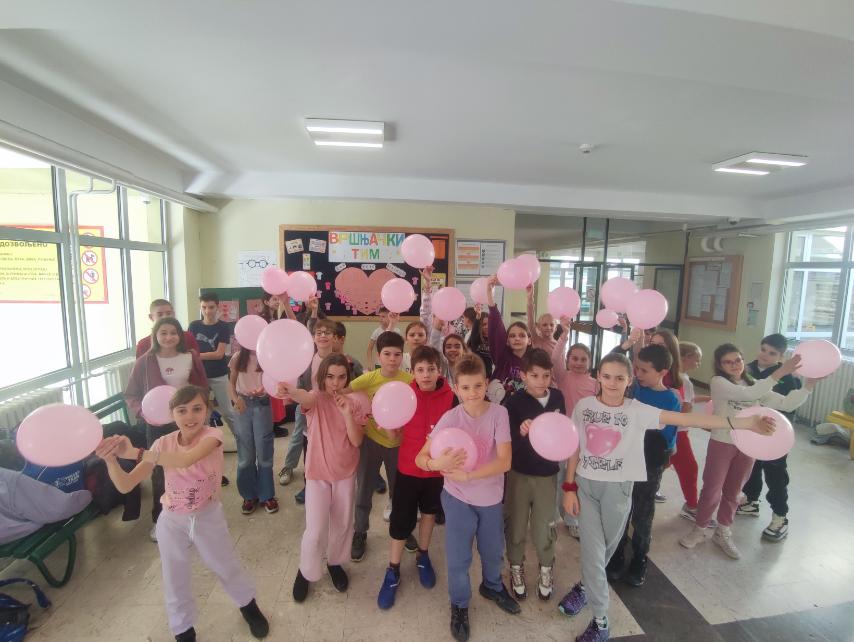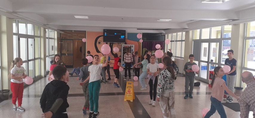 Чланови Вршњачког тима и ученика који похађају активности у једносменском раду су приредили перформанс у ђачком холу кроз песму и музику посвећену овој важној теми, и игру балонима.
