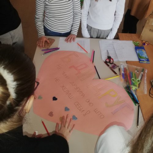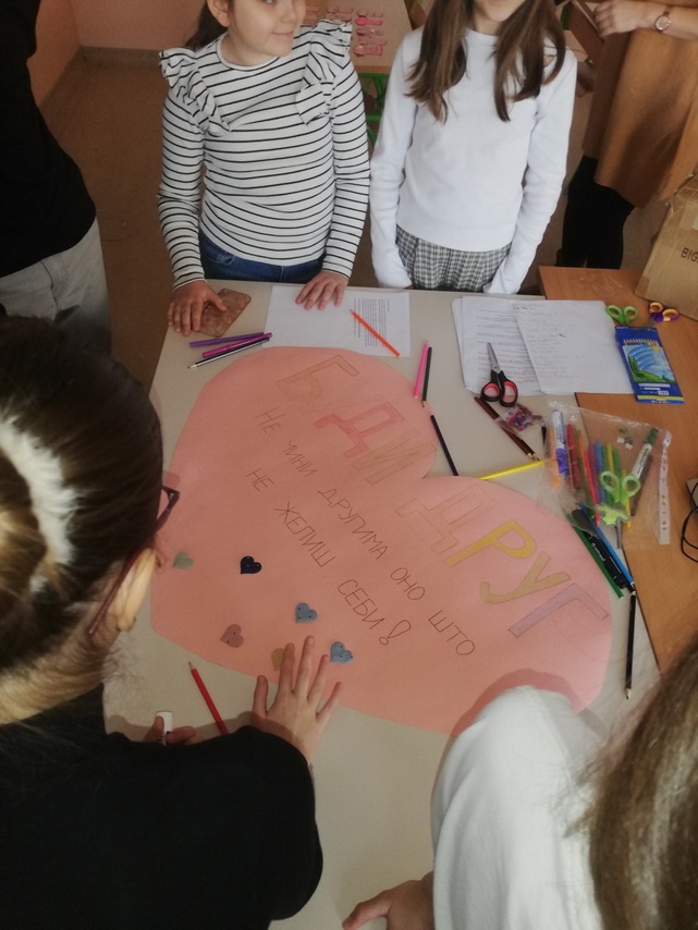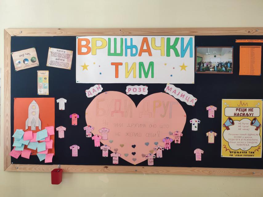 Током радионице чланови Вршњачког тима су у недељи обележавања Међународног дана борбе против вршњачког насиља – Подељена срећа је два пута већа, промовисали превенцију и заштиту ученика од насиља и дискриминације кроз израду паноа, ликовних радова и на тај начин указали на значај толеранције, међусобног уважавања, поштовања различитости, емпатије, сарадње, и још једном указали на значај постојања Сандучета поверења и потребе да на ЧОС-у сви заједно посвете пажњу овој теми…