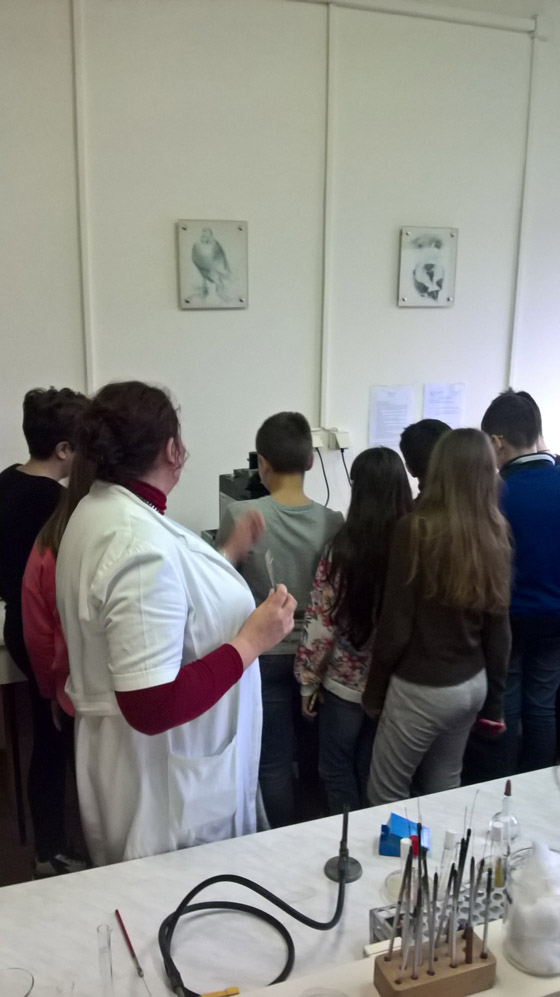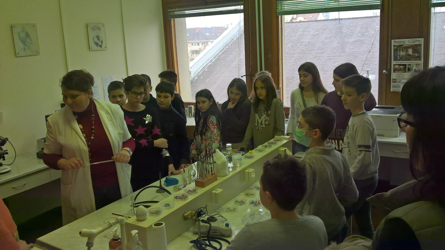Ученици петог пет одељења 13. фебруара били су у посети Универзитету у Новом Саду, на Технолошком факултету, на Одељењу за Микробиологију хране. Родитељ нашег ученика, Сунчица Танацков, љубазно је дочекала наше ђаке, показала им лабораторију и водила занимљив разговор. Ђаци су могли да погледају разне микроорганизме под микроскопом и тако утврде знање стечено на часовима биологије. Дружење је протекло у сјајној атмосфери, а домаћини су похвалили наше ученике за показано знање и пристојно понашање. Ученике су водиле наставница биологије Виолета Болић Тривуновић и одељењски старешина Снежана Кецо.