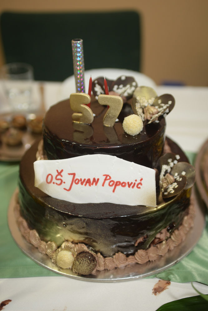 Ове године свечано смо обележили 57-годишњицу рада наше школе. Одлучили смо да за прославу одаберемо свечану салу Гимназије „Лаза Костић“ како би на правој позорници велики труд и рад извођача дошао до пуног значаја. Учествало је 250 ученика од 1. до 8. разреда кроз занимљиве игроказе, плесне тачке, хорске нумере, рецитације. Приредба се одржала у петак, 17. 11. 2017. у 17.30 у препуној свечаној сали Гимназије. У холу наше школе припремљена је пригодна изложба ученичких радова као и књига о Војводини и завичају, а следећи број „Ђачког пера“ ће бити у складу са мотом приредбе. Ангажовано је чак 30 наставника на припреми и реализацији прославе.