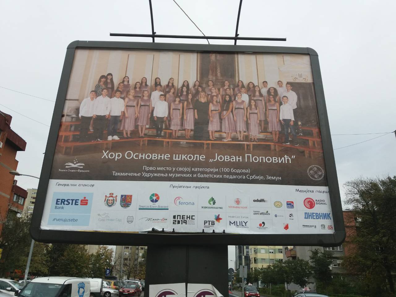 И ове године хор наше школе представљен је на билборду у оквиру пројекта УЧИМ + ЗНАМ=ВРЕДИМ. Удружење за промоцију друштвене одговорности у сарадњи с Музичком омладином Новог Сада организовало је 19. новембра концерт најбољих хорова основних школа „Јован Поповић“ и „Ђура Даничић“, Гимназије „Јован Јовановић Змај“, оркестра и женског хора Средње музичке школе „Исидор Бајић“, те солиста Основне музичке школе „Јосип Славенски“. Публика је у нешто више од једночасовног програма имала прилике да чује и ужива у извођењима младих шампиона који су на бини демонстрирали таленат и квалитет.