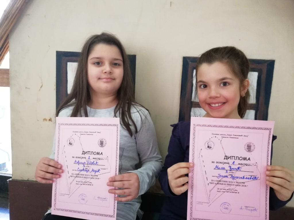 Ученице трећег разреда наше школе су учествовале на такмичењу Читалићи – кликераши у Сремској Каменици 21.02.2018.године и том приликом оствариле запажен успех: Мила Ђокић (III-1) – прво место, Анђелија Поповић (III-2) – друго место.